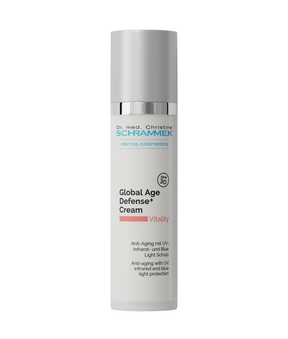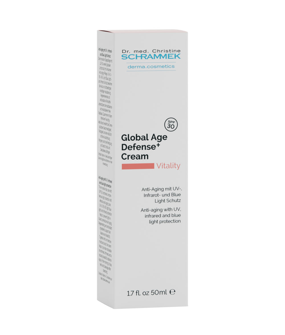 The Global Age Defense+ Cream helps to protect the skin from the negative effects of three types of light radiation: UV rays, blue light, and infrared radiation (IR-A). Thanks to its additional anti-aging power, it has regenerating, hydrating, and antioxidant properties. With its increased sun protection factor (now SPF 30), the new cream also provides reliable protection against photoaging, helping to promote radiant, smoother, more supple, and firmer-looking skin.